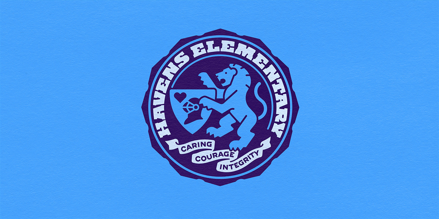 We were asked to create a new graphic sigil for Havens Elementary expressing their school motto, "Caring, Courage, Integrity." Our final sigil and several variations were ultimately applied to school t-shirts, yearbooks, hats, pins, and patches.