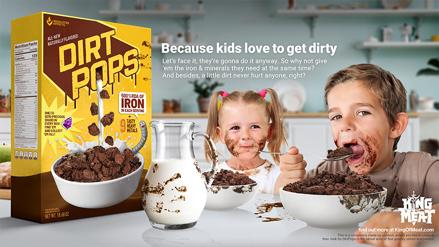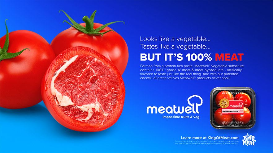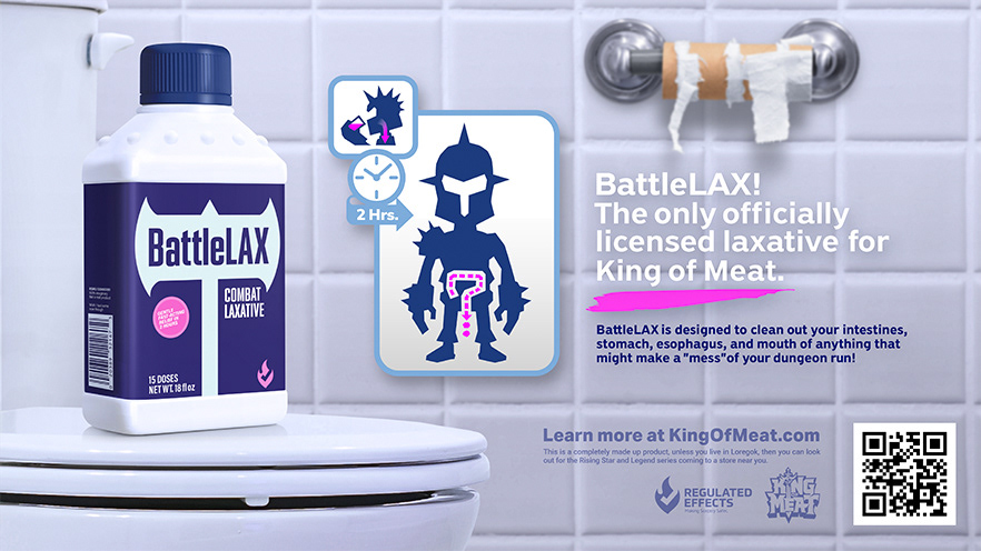 We created the primary logo for King of Meat, along with supporting program logos and numerous in-game marks for the co-op party platformer. The game’s satirical tone aligned perfectly with our sensibilities, leading us to also develop product concepts and spoof advertisements, from ideation, copywriting, to final execution, that were used to promote the game.